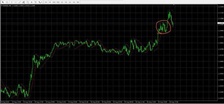 메타트레이더 MT4 해외선물 8월20일 유로달러 EURUSD M5차트입니다.